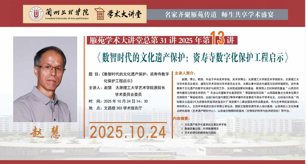 雁苑学术大讲堂预告:《数智时代的文化遗产保护:资寿寺数字化保护工程启示》