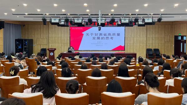 讲座中,柴丽萍凭借深厚的学术积淀与丰富的政策研究经验,从国家战略的高度,解读了高质量发展的时代背景与核心特征。并结合详实数据与典型案例,深入剖析甘肃省高质量发展的内外部环境:既点明甘肃在生态气候、特色农业、中医药文化、历史文化、战略通道、旅游资源、能源资源及人文精神等领域的独特优势,也回顾了新中国成立以来尤其是“十四五”期间,甘肃在经济总量、产业结构、民生福祉、生态建设等方面的显著成就,同时也客观指出当前面临的经济基础薄弱、资源约束趋紧、人才流失等挑战。