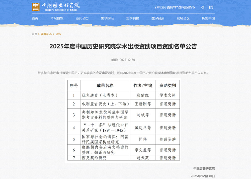 中国历史研究院是以中国社会科学院所属相关研究所为基础组建的国家顶级研究机构,承担中国历史领域相关研究,推进中国特色历史学学科建设、学术体系和话语体系建设,统筹指导全国历史研究工作,展示和传播中国历史文化、组织国内外学术交流等职责。中国历史研究院“学术出版资助项目”面向全国史学界,资助高质量史学类学术成果。