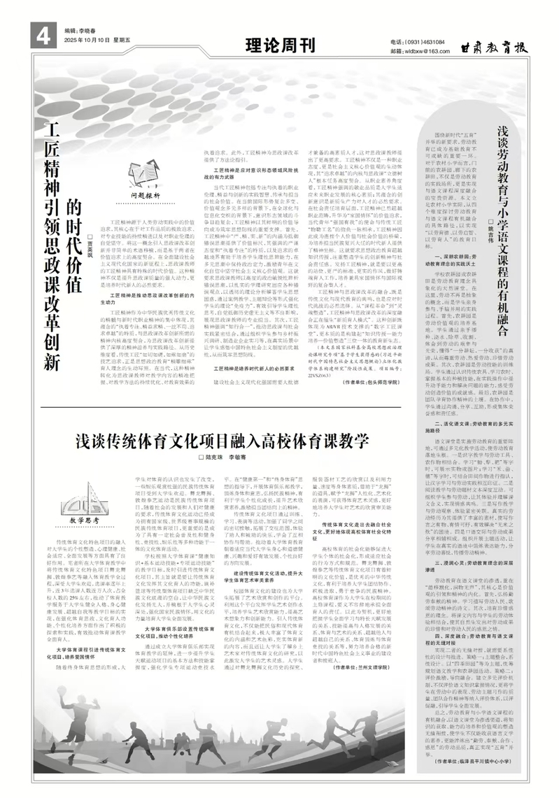 陆克珠教授团队在《甘肃教育报》理论周刊发表“体育美育”研究文章
